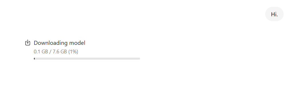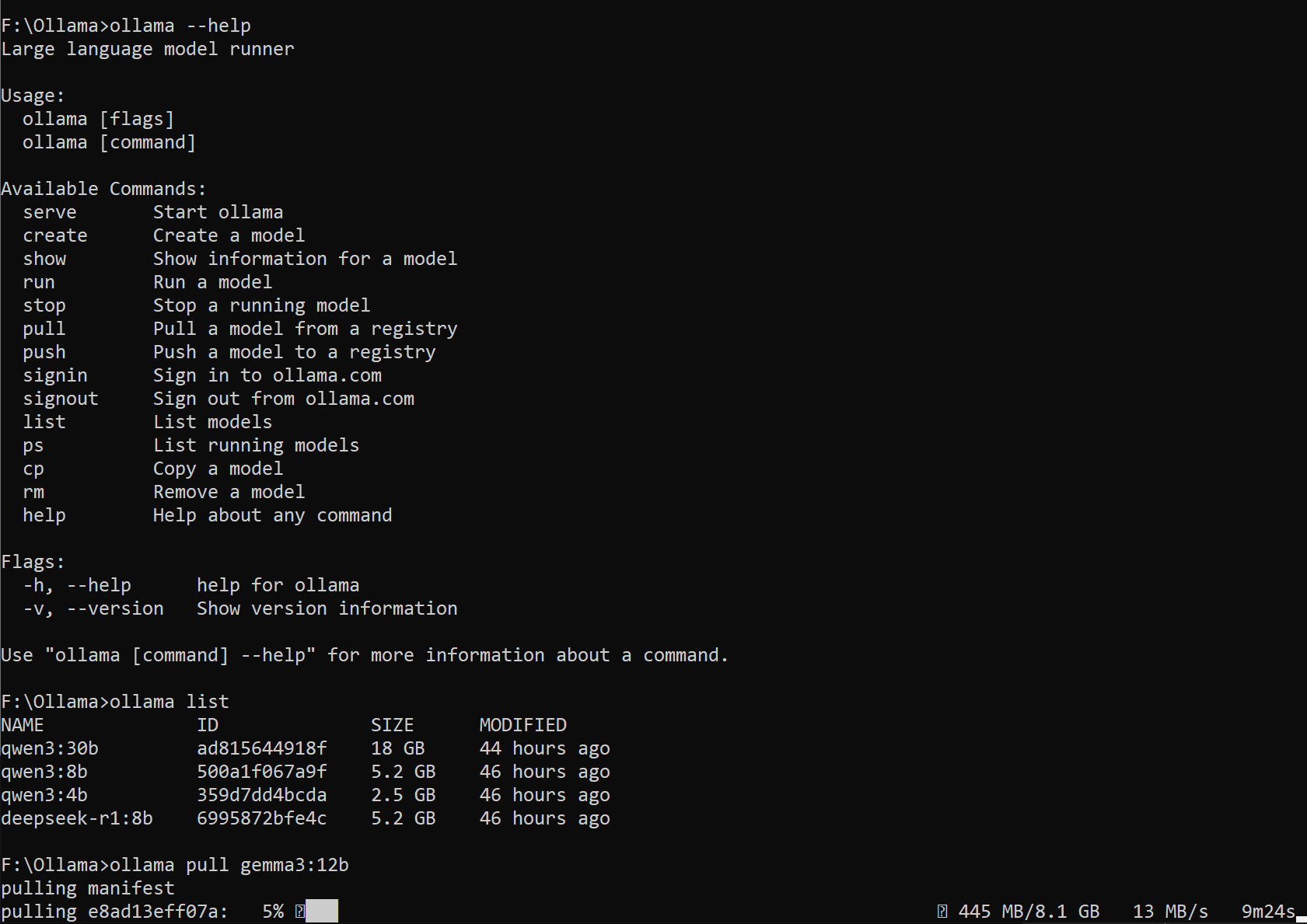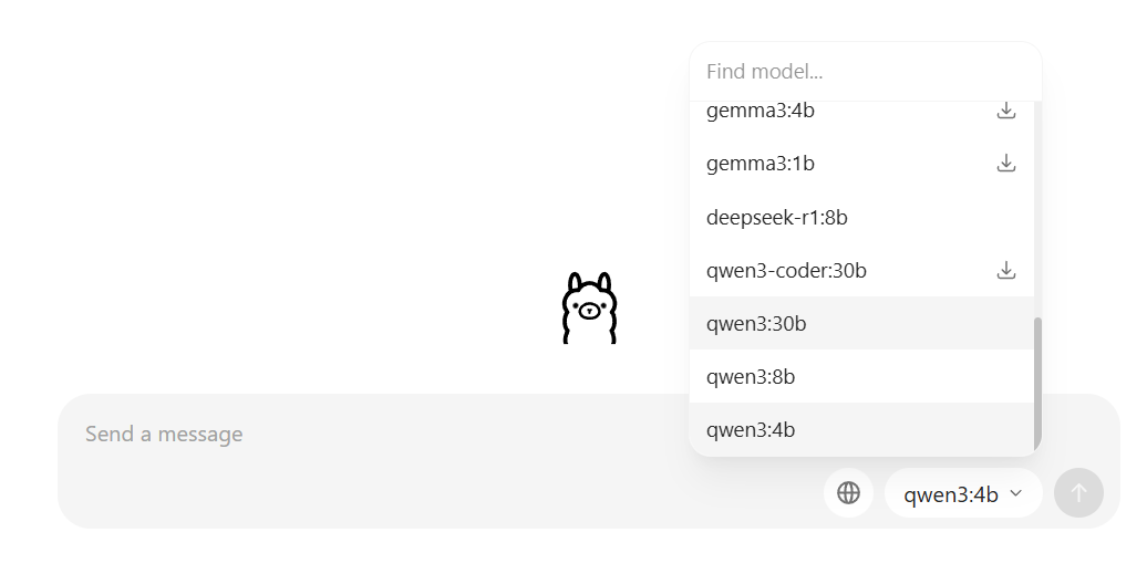 Both the Qwen3:8b and DeepSeek models were about 5GB in size … and they show them downloading on the screen when you choose a new model and ask it something …