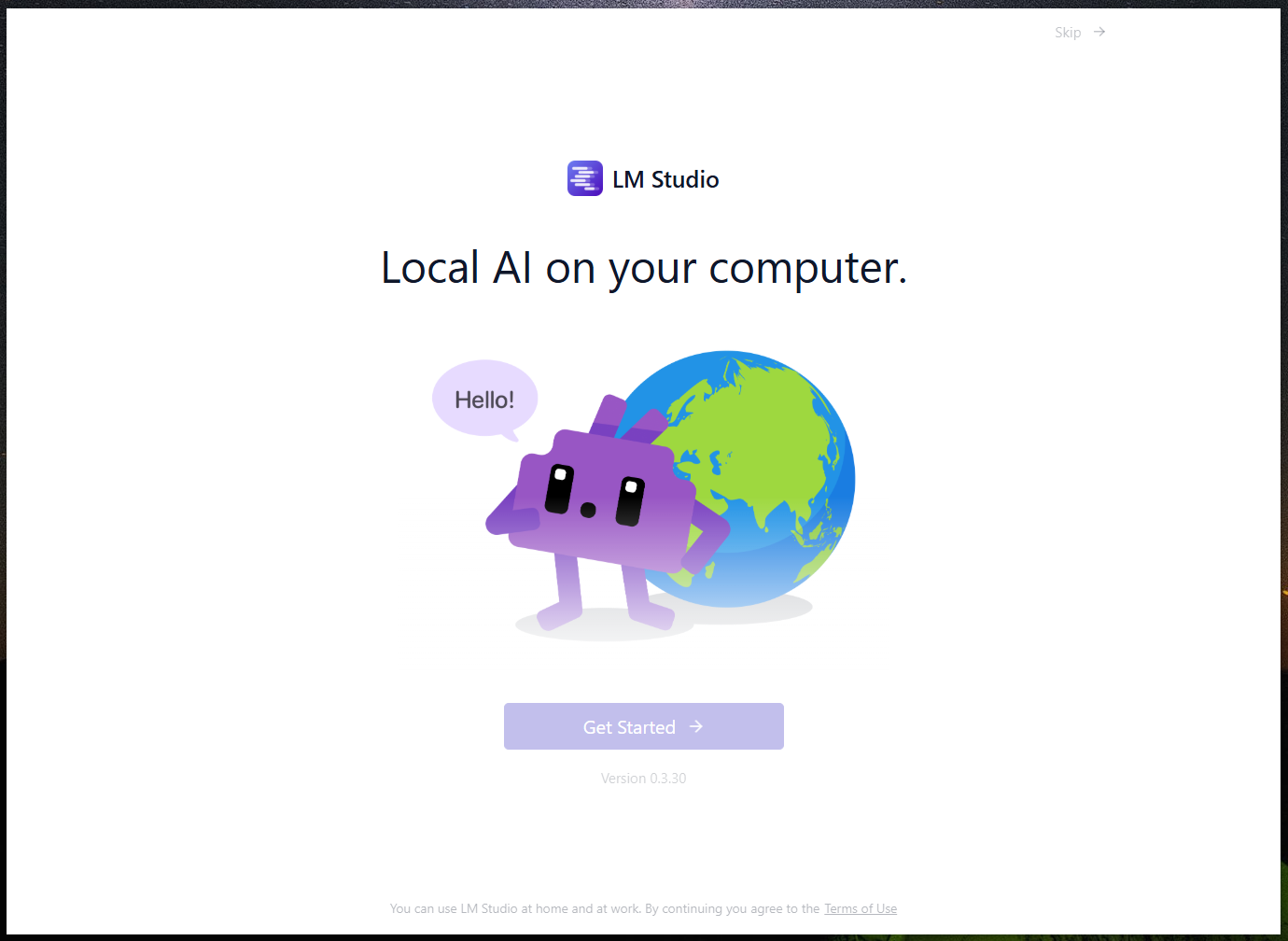 Yeah, I guess the “Get Started” is just about downloading your first model to play with and skipping that means you’re going manual/selecting your own.