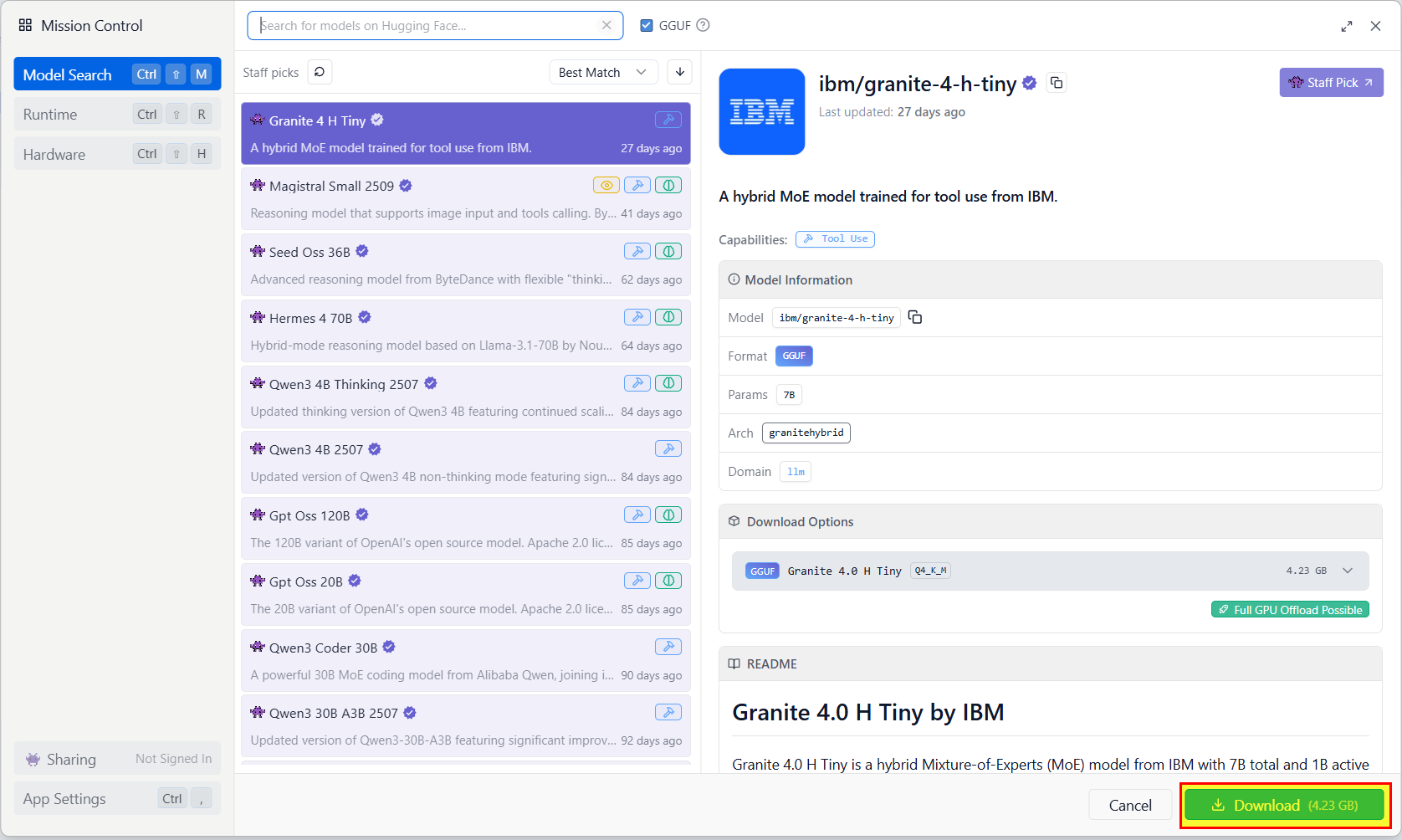 LMStudio does allow you to dowload other models, I don’t have access to it at the moment but I was able to download and load a bunch of different models.