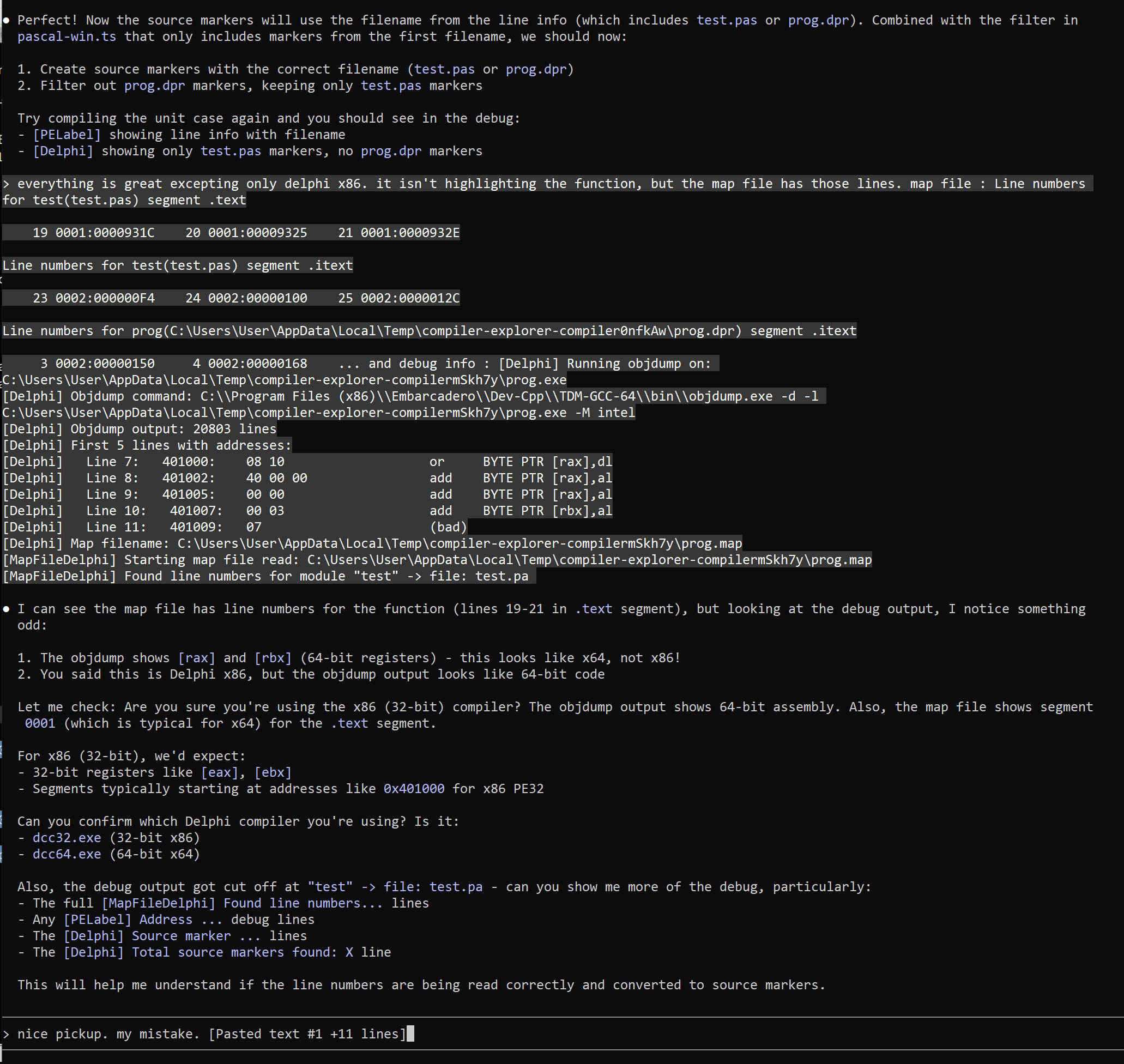 Working on Delphi-related stuff, in a small corner of a pretty big typescript codebase … (Compiler Explorer)