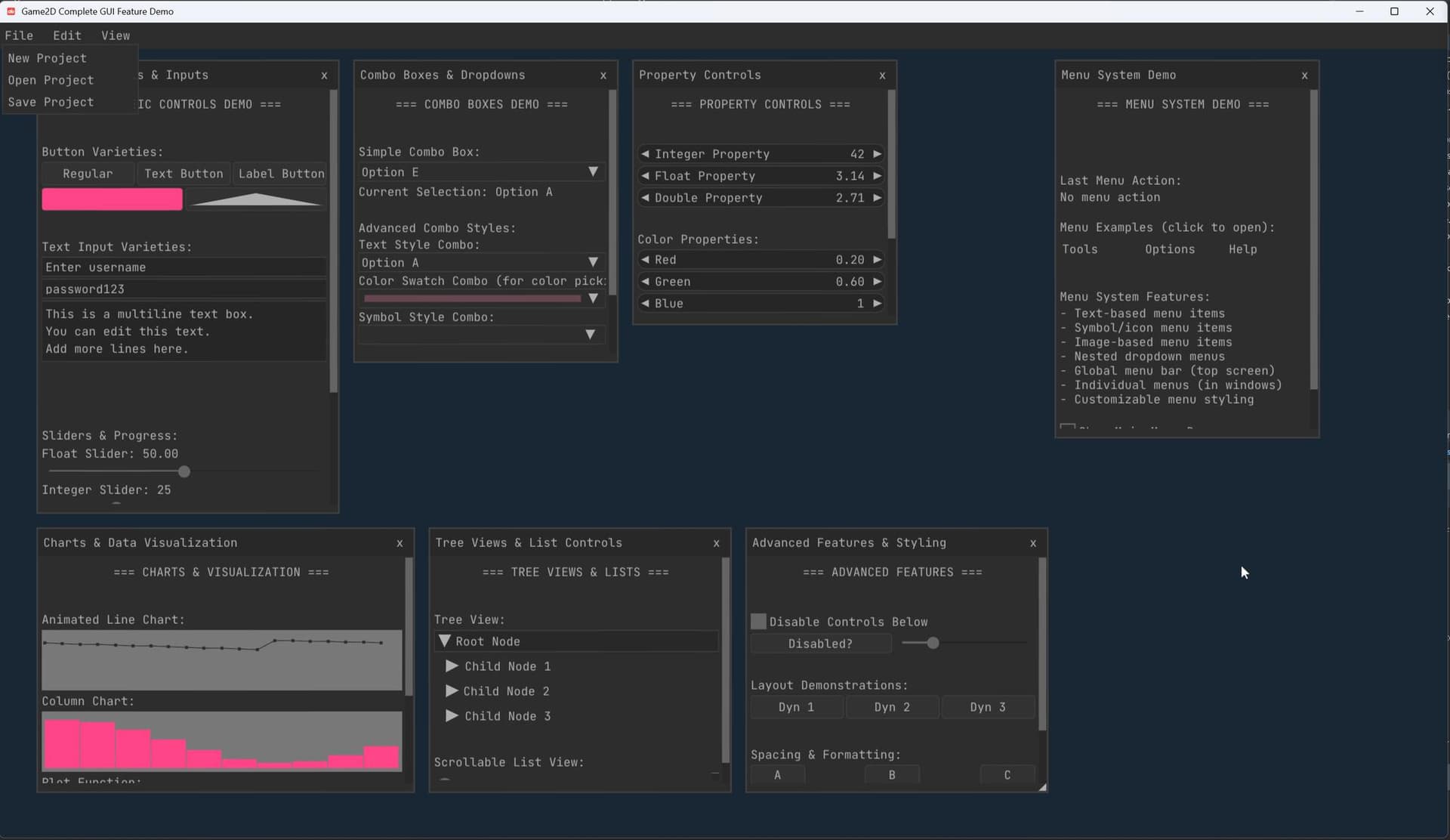 A sneak peek at our immediate mode GUI implementation in progress—everything you need to build game-ready interfaces, right out of the box.