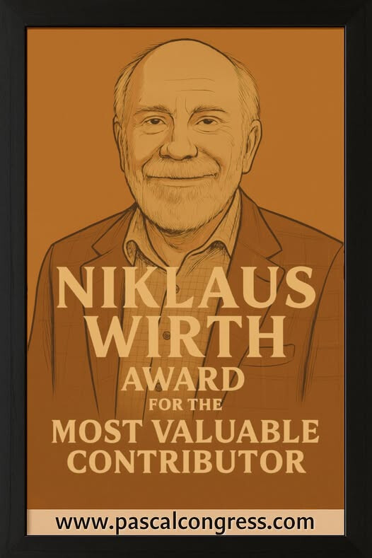 Dear colleagues, we have opened the nomination period for the Niklaus Wirth Award for the Most Valuable Contributor to the Pascal community. If you would like to nominate someone, please read the rules on our website. Please help us spread the word. Most Valious Contributor Niklaus Wirth Award 2026