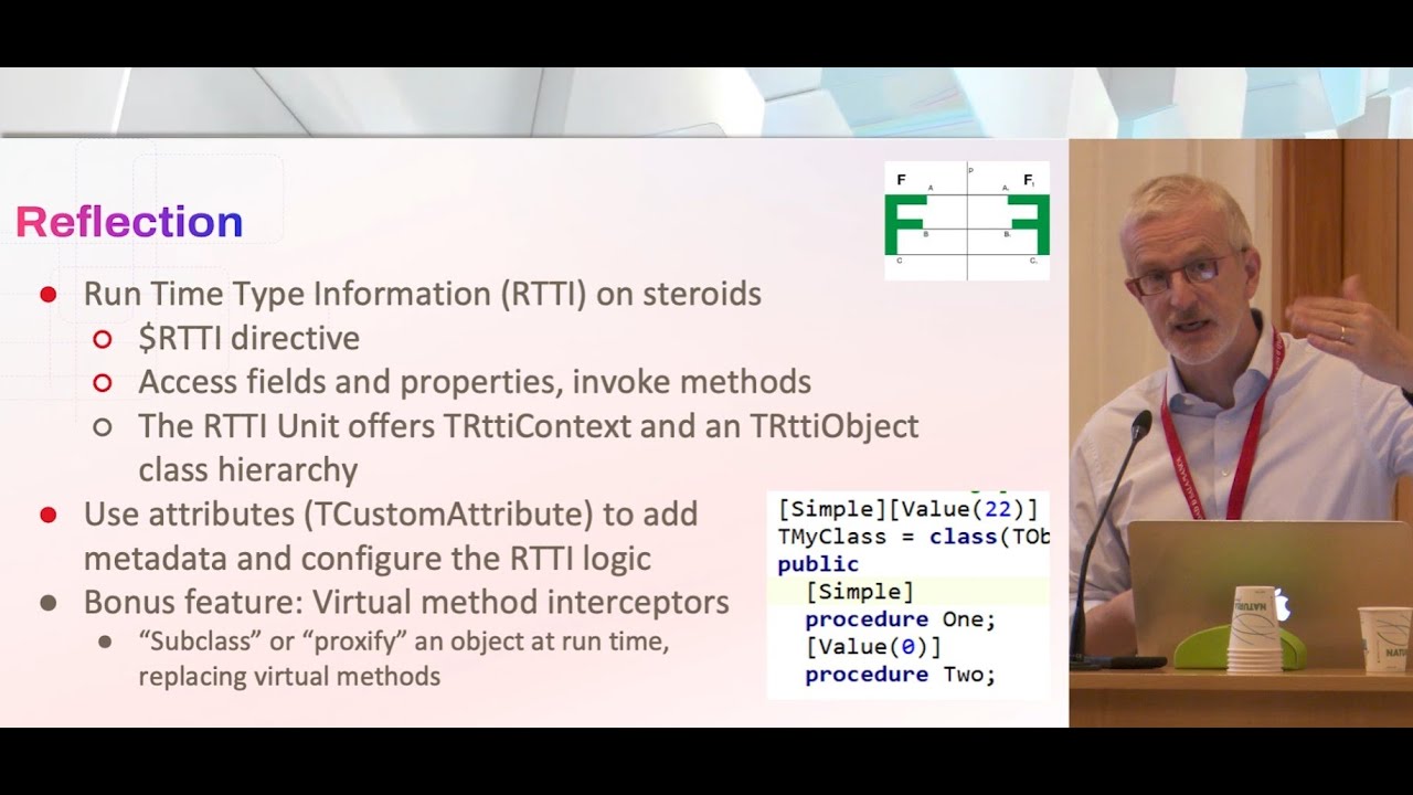 Summary: This session offers a roundup of Delphi’s Object Pascal, including some of the core language features and key reasons for choosing the language, going in depth into some of the modern language features like generics and anonymous methods, and touching also on a number of recent additions to the programming language. Some of the actual demos can be found in the repository below or in the official repository of Marco’s Object Pascal Handbook